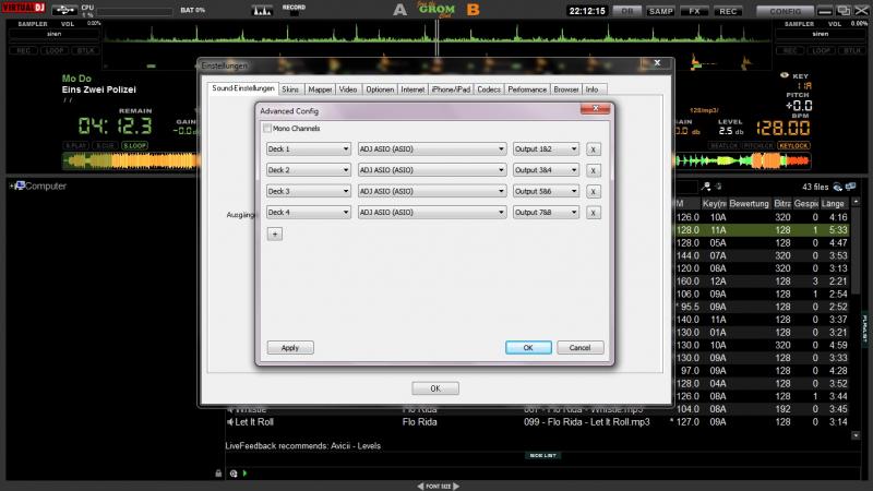 Versuch mal das Deckrouting in der advanced gleich einzustellen wie in dem Asio Panel