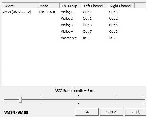 Hier mal ein Screenshot von den Asio Einstellungen nach dem die VMS den dienst eingestellt hat: