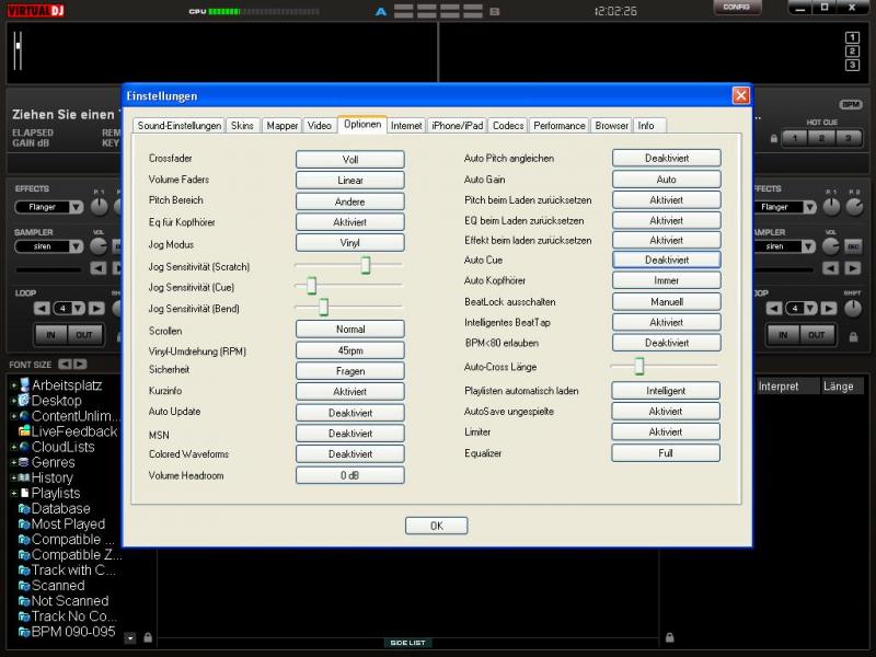 Meine Einstellungen in VDJ unter Optionen Jogwheels