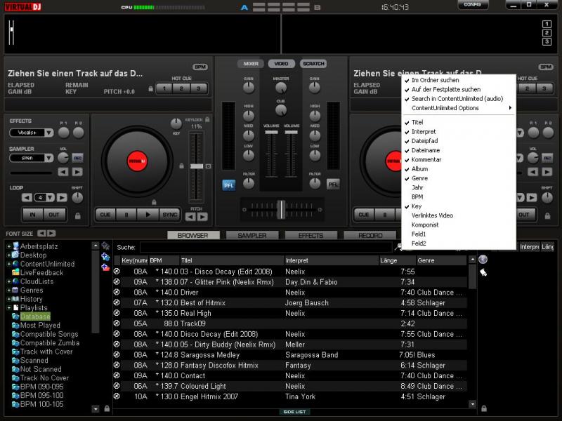 Also, ich suche meine Tracks meistens indem ich VDJ kurz nach unten lege und dann direkt über die Suchfunktion vom Lappy oder der jeweiligen Speicherquelle oder ich weiß halt genau oder relativ genau wo der Song ist und dann gehe ich wieder in VDJ und klicke links durch den angezeigten Datenbaum sage ich mal. Manchmal ganz schön umständlich...