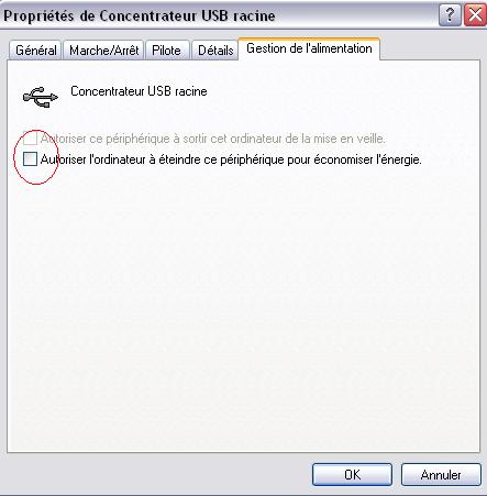 - la gestion de l'alimentation des port USB par windows