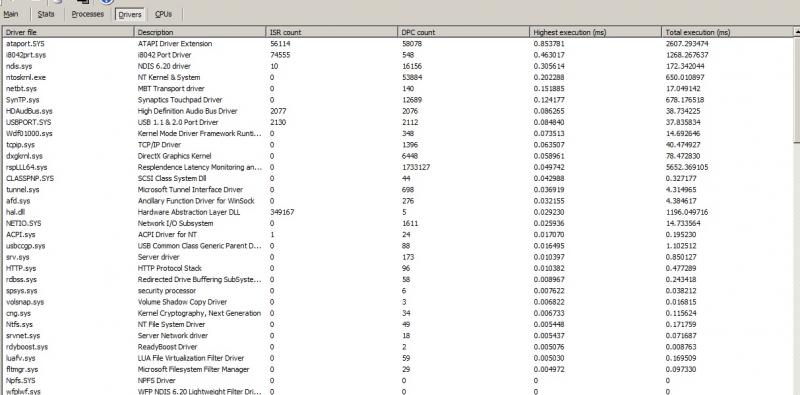 Driver with highest ISR total time: ataport.SYS - ATAPI Driver Extension, Microsoft Corporation