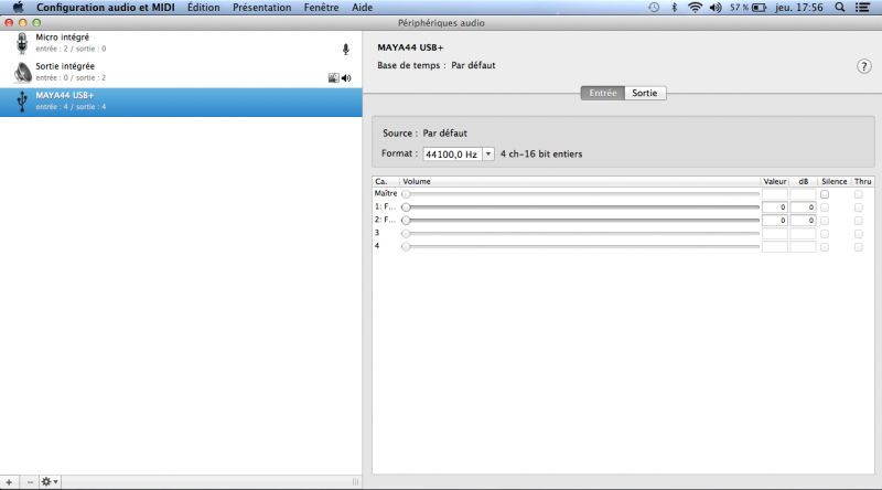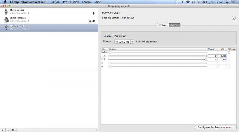 Merci pour tes conseils. J'ai essayé les drivers pour maya 44usb+ et même ceux pour la Maya 44 classique mais rien ny fait.