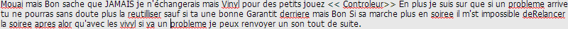 Mouai mais Bon sache que JAMAIS je n'échangerais mais Vinyl pour des petits jouez << Controleur>> En plus je suis sur que si un probleme arrive tu ne pourras sans doute plus la reutilliser sauf si ta une bonne Garantit derriere mais Bon Si sa marche plus en soiree il m'st impossible deRelancer la soiree apres alor qu'avec les vivyl si ya un probleme je peux renvoyer un son tout de suite.