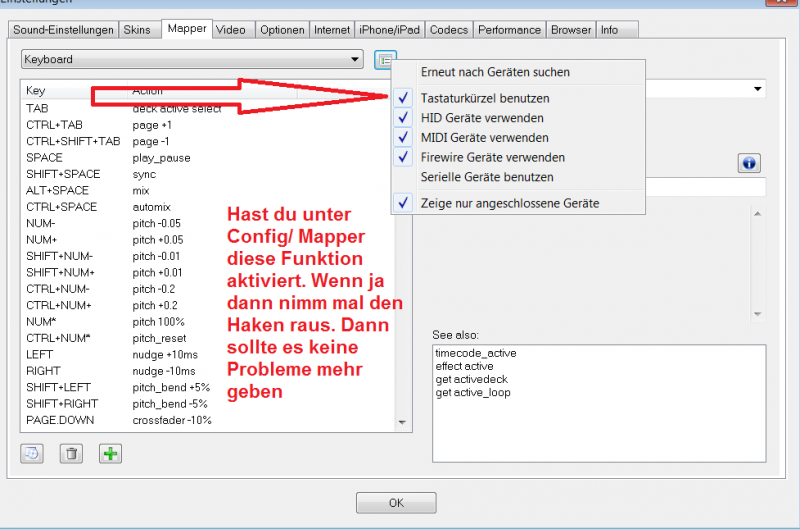 Wenn das Keyboard Mapping aktiviert ist passiert das immer dann wenn der Focus von Cursor NICHT im Suchfenster ist.