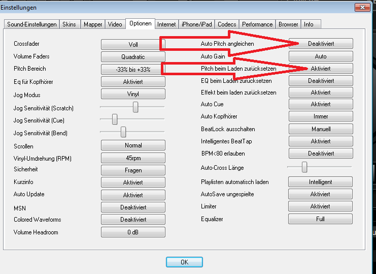 Für dich eigentlich nur Config - Optionen - Pitch beim laden zurücksetzen.