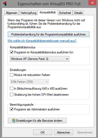 Mit der rechten Maustaste auf VDJ (.exe) ---> Eigenschaften. Rest siehe Bild.