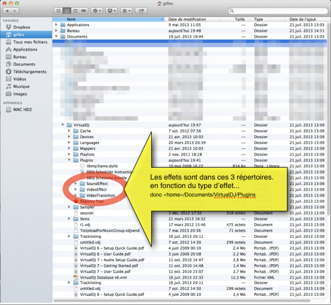 J'ai un problème, je viens d'acheter le logiciel virtualdj pro pour mac et je souhaiterais ajouter des effects, j'ai lu un article présent sur le site qui l'explique mais impossible de mettre la main sur le dossier du logiciel que ce soit dans library ou documents il est introuvable, j'ai bien essayé de le créer mais le logiciel ne trouve pas les effects que j'ai télécharger ainsi que les skins. Ou es ce que je dois mettre les effects? Merci de votre aide j'en ai grand besoin!