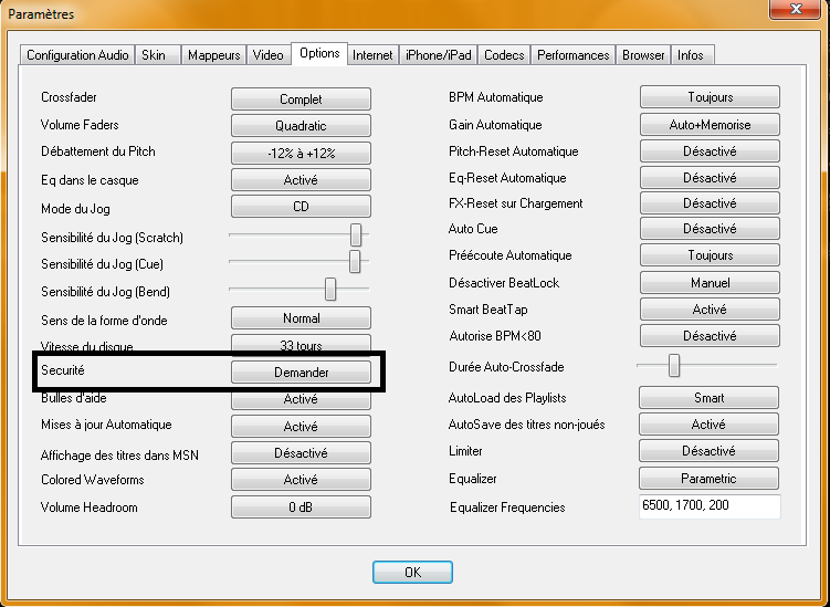 Dans config->option de Virtual Dj -> Sécurité est il bien sur demander ?