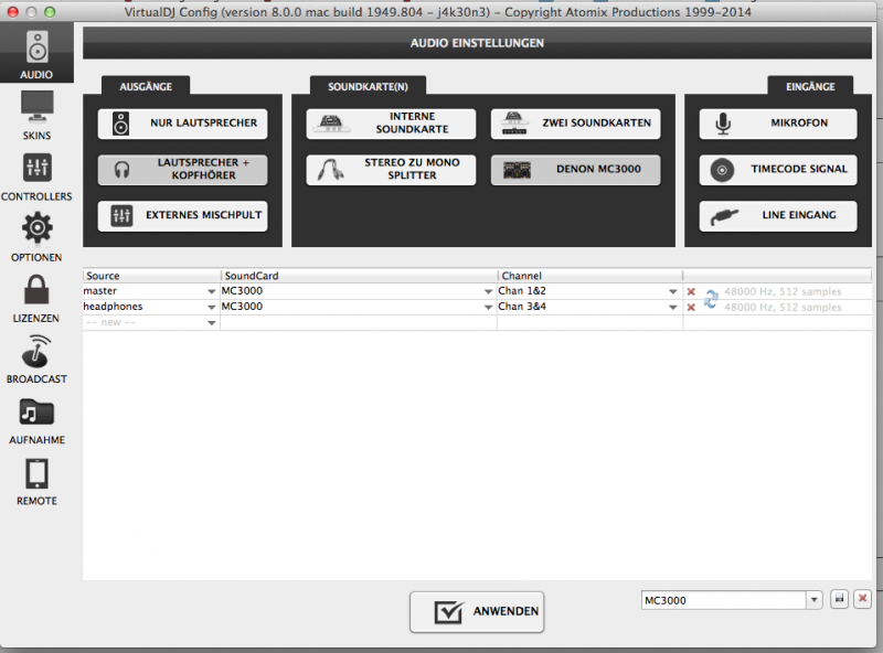Also hier mal meine VDJ 8 Soundconfig. Wie darf ich das genau mit den ASIO Treibern verstehen ? Muss man für den Mac extra Treiber installieren ? Bin davon ausgegangen dass der Mac die nicht braucht...