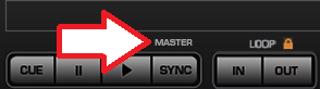 Vous devez sélectionner le deck dont le bpm doit être copié en appuyant sur le master (orange quand sélectionné). La différence de bpm max est d'environ de 25 avec une licence L.E (paramétrable avec une licence pro full)