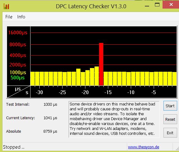 Im Endeffekt das Selbe Fehlerbild. Irgendwas auf Deinem Rechner verursacht eine riesen Latenz - durchgehend.