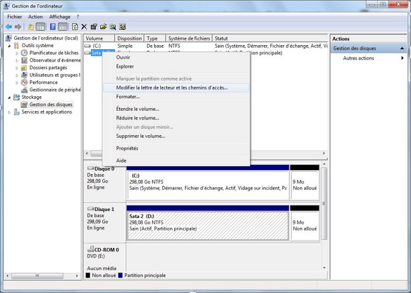 Clic droit sur poste de travail -> Gerer -> Gestionnaire de Disque -> clic droit sur le DD externe -> Modifier la lettre de lecteur et du chemin d'accès