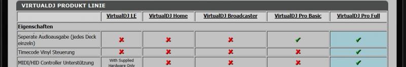 Schaue hier nach Software Vergleich was die verschiedenen VDJ Versionen können.