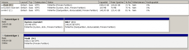 Am besten machst du von beiden Laptops ein Print Screen von der Datenträgerverwaltung wie deine Platten aussehen.
