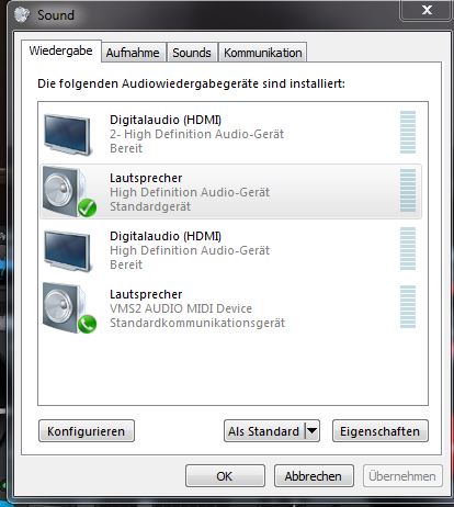 Dann weist du als 1. Soundkarte die Realtek zu und als 2. die VMS.