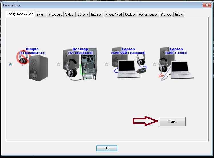 Allez dans la configuration audio de vdj et cliquez sur le bouton More... en bas à droite, et vous faite vos réglages audio.