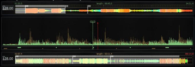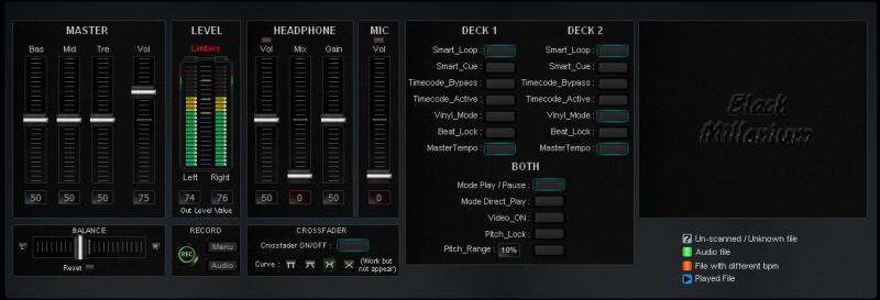 - Mise en évidence de la platine active (si en lecture et si fader > 0)