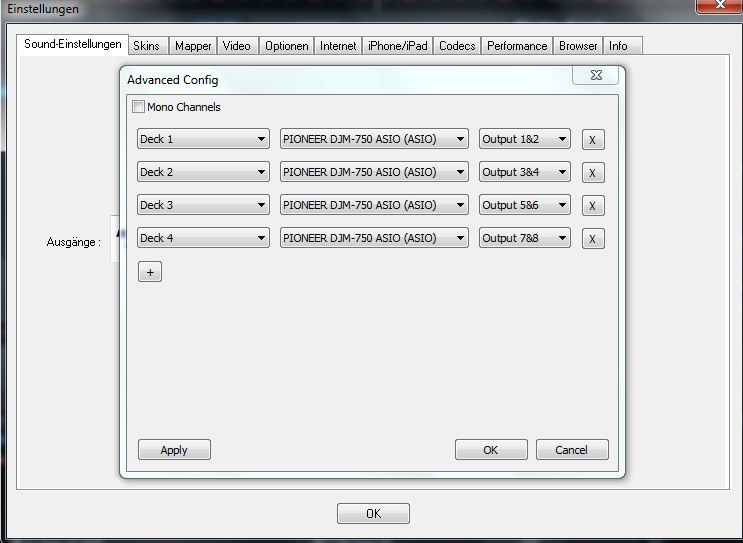 1. Kein Soundproblem, wenn ich die Einstellungen wie auf dem Bild dargestellt verwende. Aber so geht nur 1 Kanal.