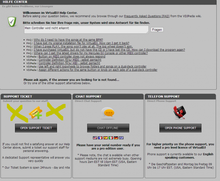 Dann öffnet sich dieses Fenster und du kannst ein Support Ticket ziehen