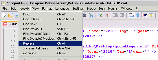 Gehe dann auf "Search/ Suchen" -> "Replace"