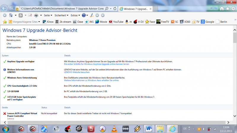 Bin am überlegen ob ich den Rechner mal komplett platt mache und wieder ein Backup von Anfang wieder drauf mache und eine SSD und 4Gbt RAM noch hinzufüge ABER bevor ich das Risiko eingehe würde ich schon noch versuchen der jetzigen Ursache auf den Grund zu gehen mit