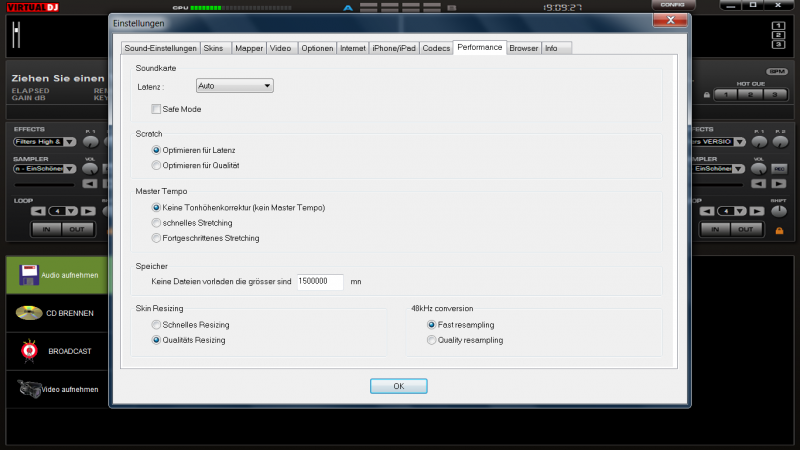 Stelle mal in den VDJ Config Menue unter Performance :