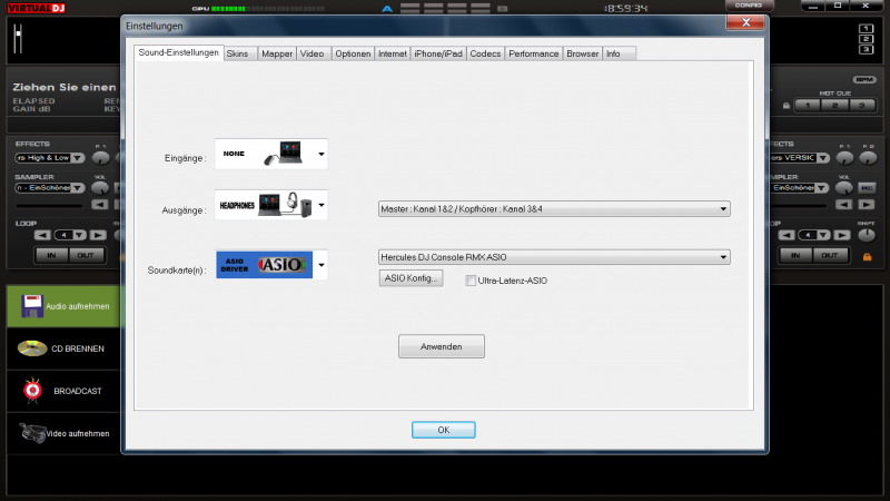 hast Du in letzter Zeit den Hercules Treiber aktualisiert? Sehe das Du mit einer RMX arbeitest.