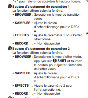 et oublié de répondre mais de mémoire les 2 boutons rotatifs sont pour quand tu mixe un fichier vidéo pour les effets ou les transitions ,-)