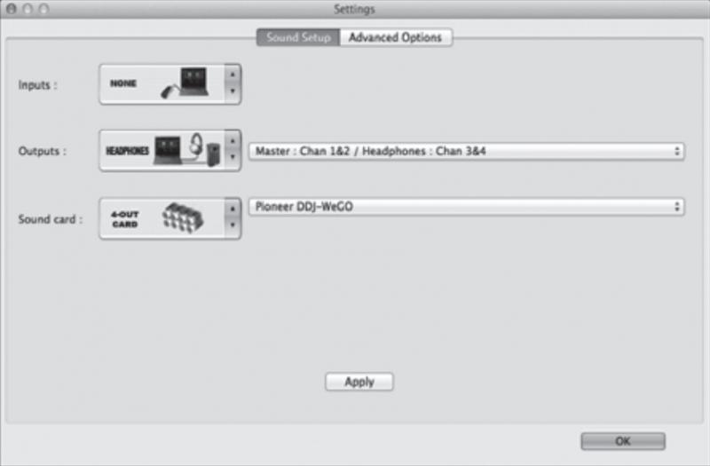 2 [Sound card]: Wählen Sie [4-OUT CARD] und [Pioneer DDJ-WeGO].