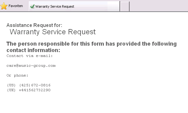 Also bei Behringer auf die Homepage, Support, Warranty bla bla... Formular ausfüllen ... Leider war deren Server defekt, somit