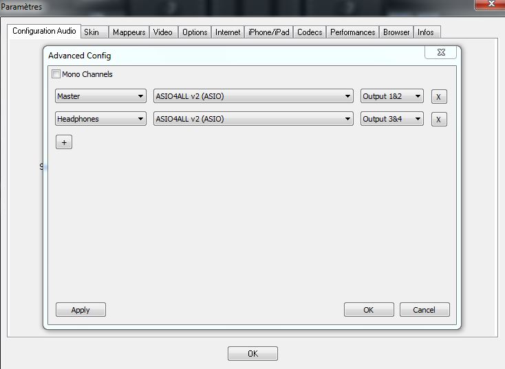 Pouvez vous me mettre une copie d écran de l onglet configuration audio de VirtualDJ merci.