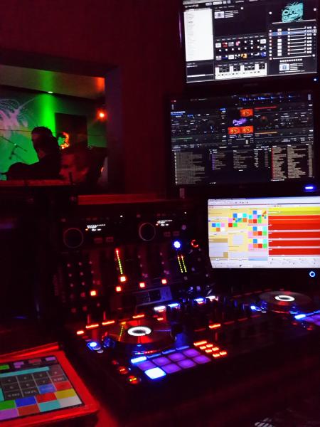 The video server use 3 amd/ati cards (not remember exact model) for the videowall, eyefinity 5x3 and one more for render all the graphics with 2 output, one for control monitor and the other for lcd line, all in 1080. At the moment resolume can“t handle such resolution and number of screens, frames to low, the arkaos output in highres is really good, extreme res 5400x5760. When the system was build only the videowall & arkaos ran on that pc, later i use one of unused output for lcd line wich before ran from the main pc with VDJ. In the moment try to put all in resolume for better graphics. All the software is triggered wireless from an ipad with Lemur via OSC, VDJ via midi and Sunlite, dmx soft in another pc, via midi. before i use GalaxyTab2 10.1 with touchosc & others android apps but Lemur is the best, no comparisson point.