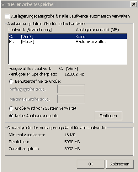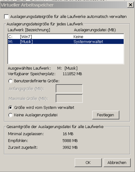 In Bezug auf das arbeiten mit Virtual DJ bzw. auch allgemein, wie sollte der Virtuelle Arbeitsspeicher idealer weise festgelegt sein.
