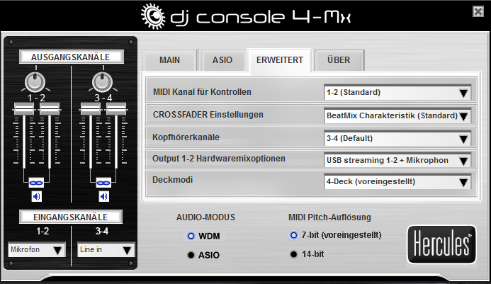Und im Hercules Control Panel ?