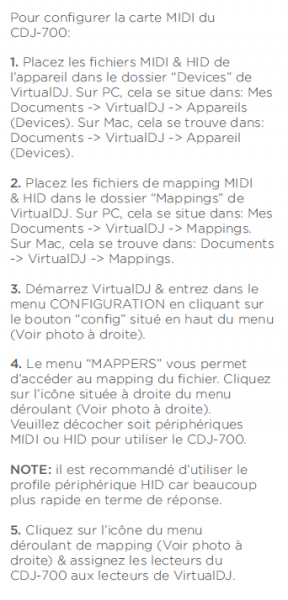 Avant de vous plaindre de l'aide sur le forum, avez-vous pris la peine de lire le manuel et avez-vous bien mis le fichier Gemini-CDJ-700-Virtual-DJ-Midi.zip dans le dossier mappers de vdj?