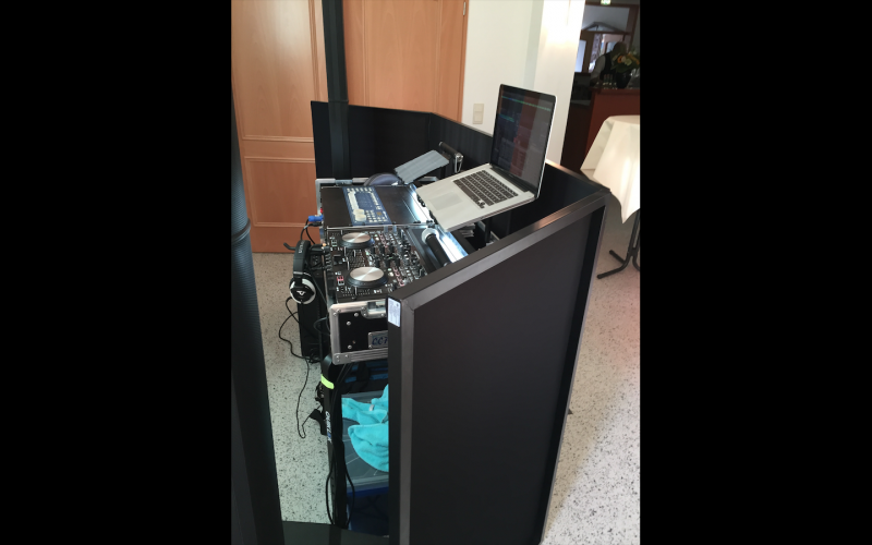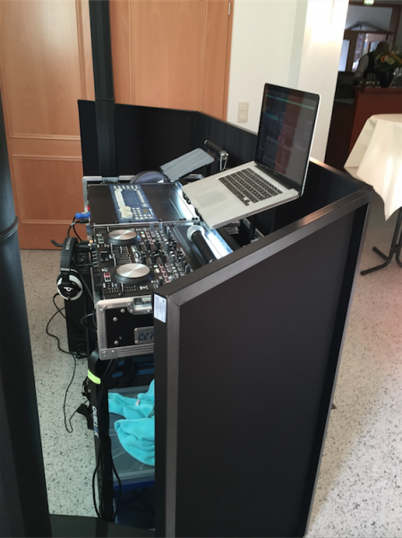 Zum Schluss die Cases draufstellen und das ganze mit Husse abhängen, bwz. zukünftig dann mit meinem DJ Screen von Fame.
