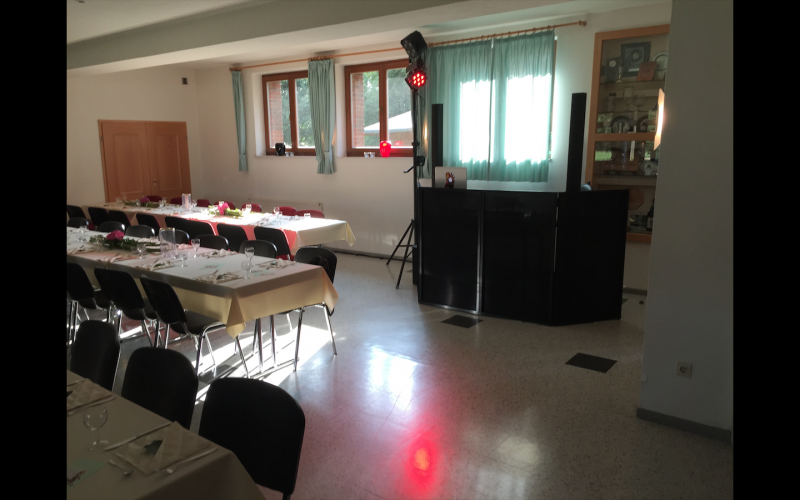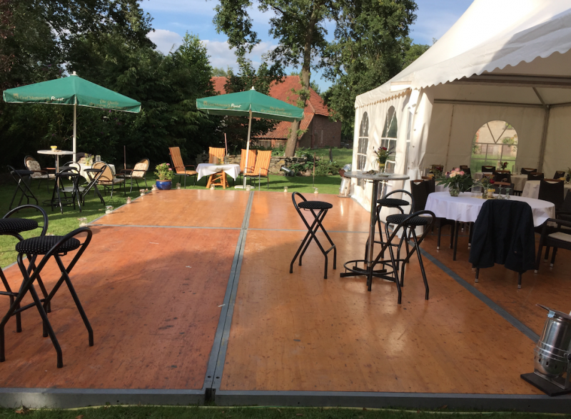 Ich habe mir eine Messewand gekauft (Kosten ~90€) und einen Campingtisch (Kosten ~30€). Werbung wollte ich auch dezent lassen. Falls mal keine Werbung gewünscht ist, habe ich noch ein zweites Unterteil der Wand, da sie eigentlich 2m hoch ist.
