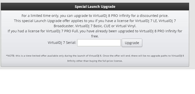 Ich spreche aber vom VDJ 7 LE VMS2 als Upgrade auf die VDJ 8 Pro Infinity ,und nicht von der VDJ 8 Controller Edition