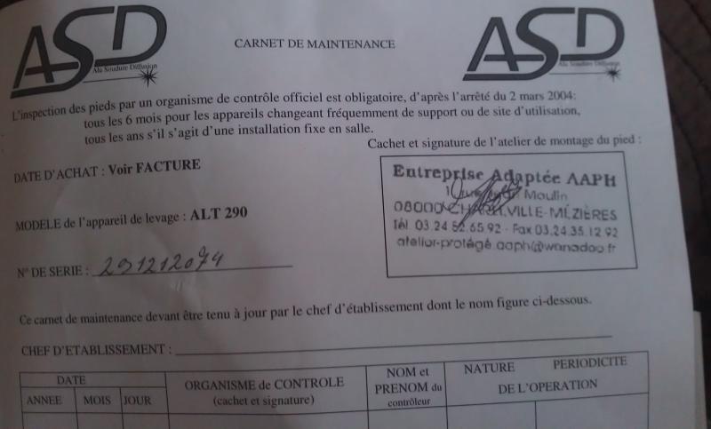 heu toutes les structures, pieds de levages ont obligatoirement un certificat, sinon il ne pourrait pas les vendre.