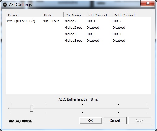 Ich persönlich hab die 8out Einstellung im Asiopanel, d.h. Midilog 1 = 1+2/ Midilog 2 = 3+4 usw....