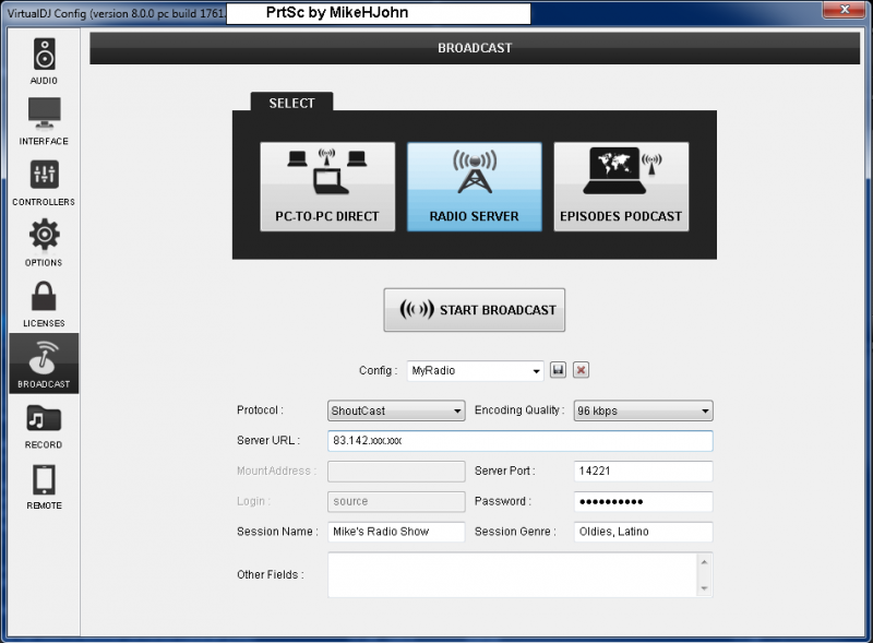 Sieh hier: Die Server URL als IP, den Port den du vom Radio Server Admin erhalten hast und das Passwort.