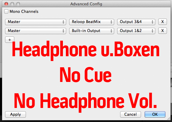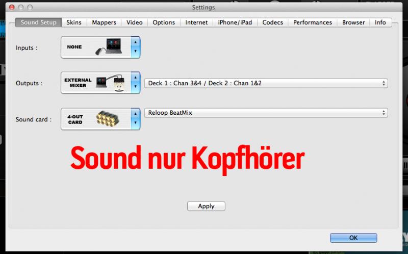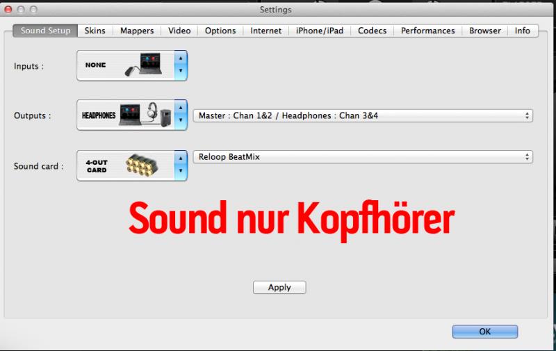 hier die Einstellung damit man beim Beatmix Headphone und Master Out hat.