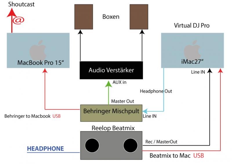 Folgendes. Ich habe vor einiger Zeit mal mein System eingerichtet und zum laufen gebracht. Anfänglich nur mit Beatmix und VDJ7 Pro und Mac. Dann habe ich aber mein Set zuhause um einen Externen Mixer, Mikrophon und Macbook ergänzt. Dies war ne richtige Fummelei bis ich es geschafft habe, auf dem iMac aufzunehmen und gleichzeitig auf dem MacBook einen Livestream mit Mikrophon zu senden.