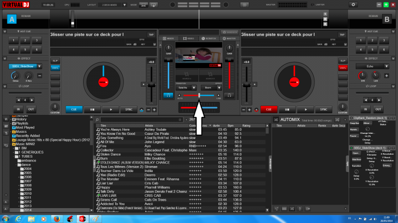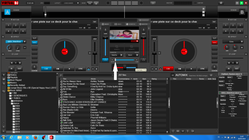 j'ai testé avec sbdj slide show c'est pareil par contre j'ai remarqué qu"en bougeant le video crossfader a gauche ca enleve la miniature au centre elle revient il doit y avoir moyen de virer ca mais j'arrive pas a trouver