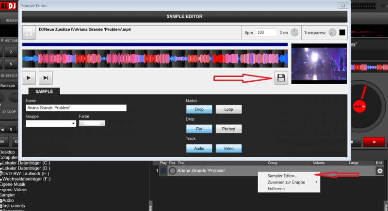Beim VDJ8 sind ja 2 Video Samples nach dem Installation schon dabei, (Scratch und 321), die kann ich im Sample Editor öffnen.