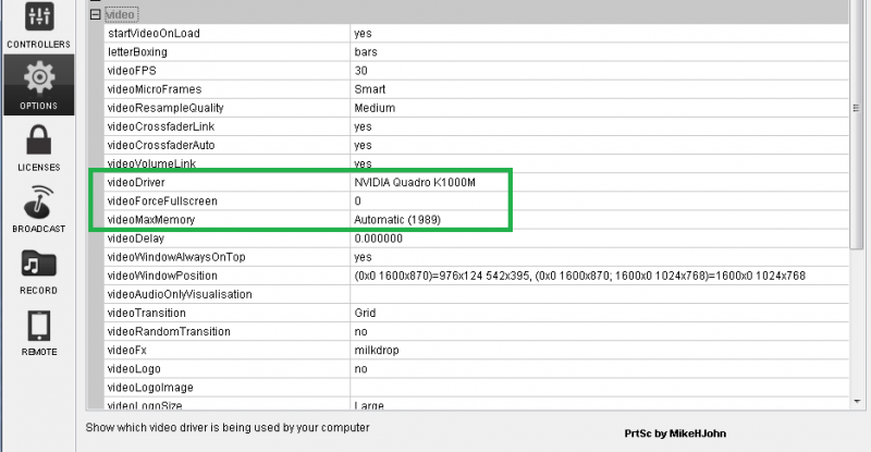 Eventuell mal videoForceFullscreen auf 1 setzen und VDj nochmals neu starten