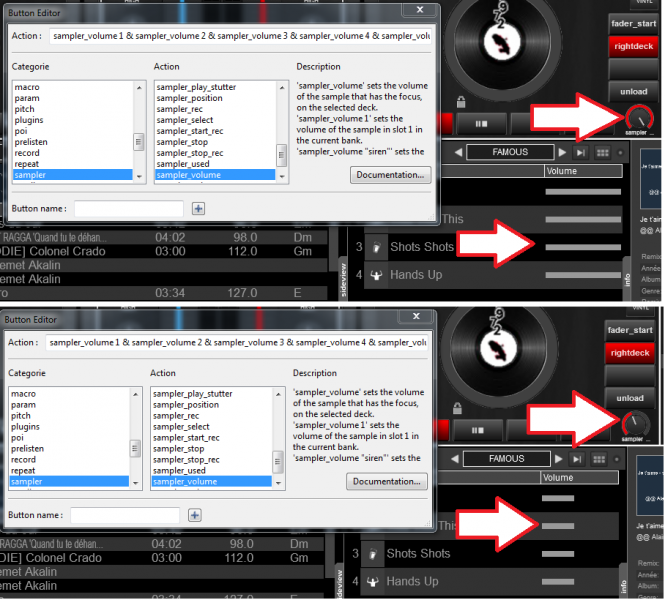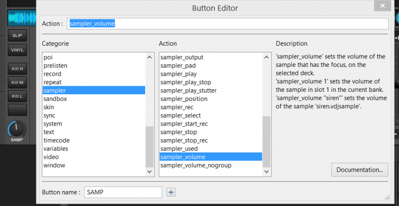 L'image ci dessous montre comment j'ai configuré le bouton rotatif custom du deck A afin d'avoir la main sur le volume general des samples. Mais cela ne fonctionne pas, une idée ?