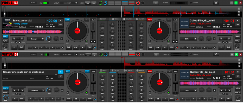 Si vous éjectez le DECK1 alors la forme d'onde du DECK2 disparait ! (idem avec les DECK3 et 4)