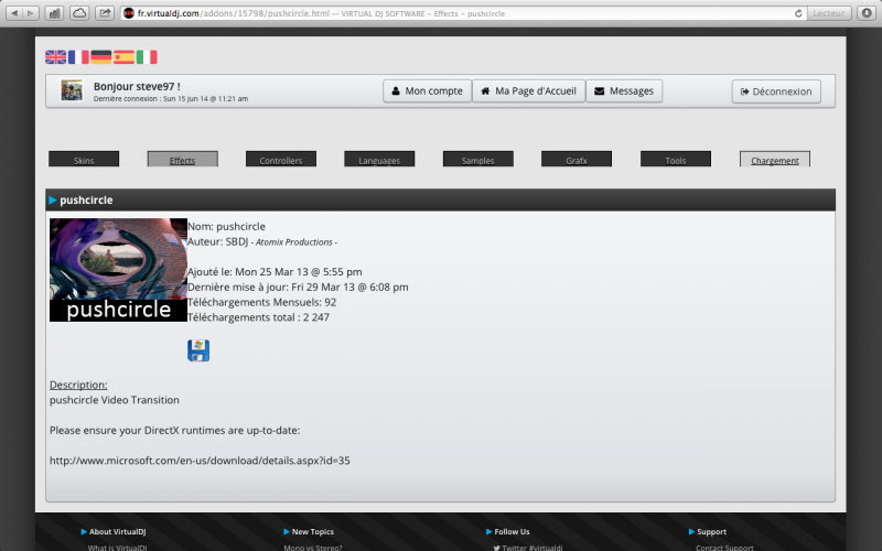 Bonjour, étant débutant dans les mix de "clip vidéo" j'ai voulus télecharger des transitions de video sur le site de VDJ... MAIS problème... Quand j'en trouve un qui m'intéresse je vois qu'on peux le télecharger que sur windows et non sur mac os.... exemple: